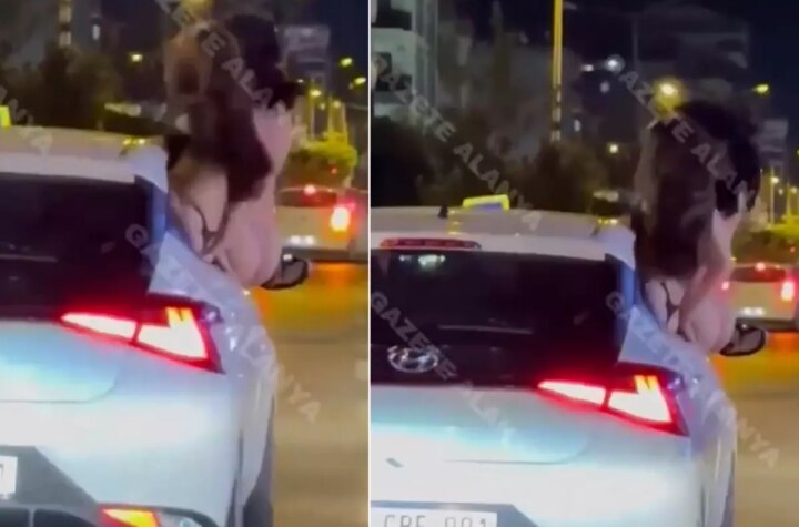 Antalya'da trafikte seyreden bir arabada, bikinili bayanların araçların camından sarkarak dans ettiği görüntüle büyük...