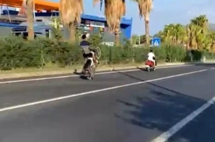 Antalya'nın Gazipaşa ilçesinde kasksız motosiklet şoförü, D-400 Karayolu'nda tehlikeli bir halde motosikletinin ön tekerini...