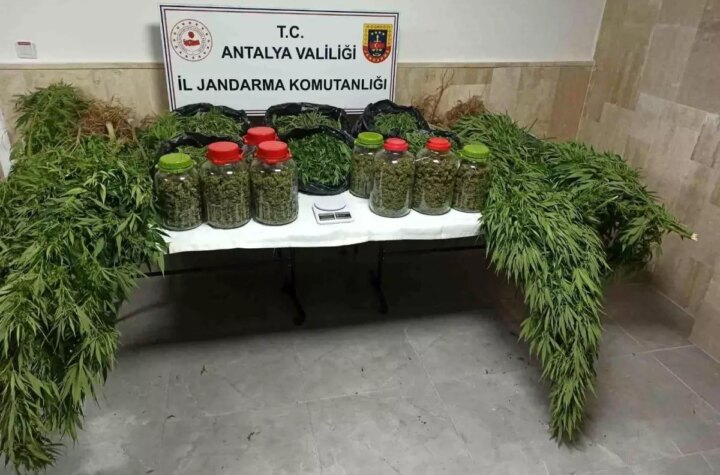Antalya Vilayet Jandarma Komutanlığı'nın Korkuteli ilçesinde düzenlediği operasyonda, 43 kilogram skunk ve 15 kök...